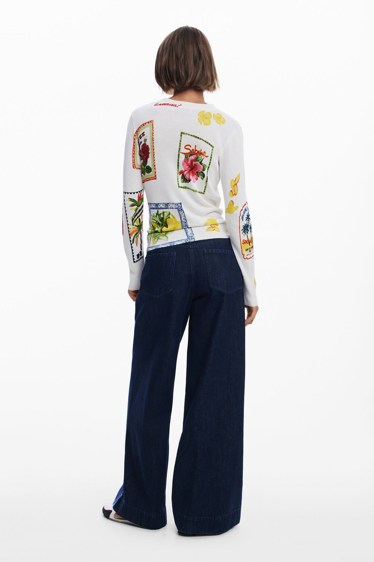 Escape into color. This lightweight long-sleeve sweater features a round neckline and a vibrant stamp-inspired print with tropical motifs. Crafted from a breathable blend of viscose, polyamide, and linen, it’s perfect for layering or making a statement on its own.