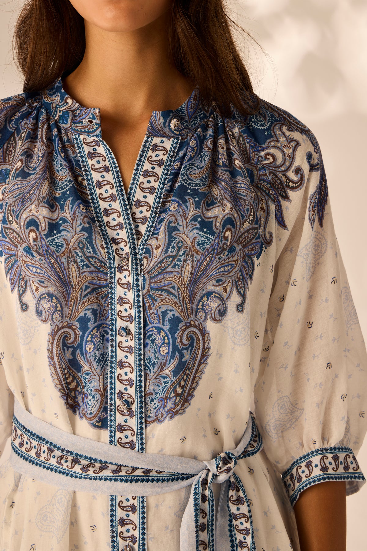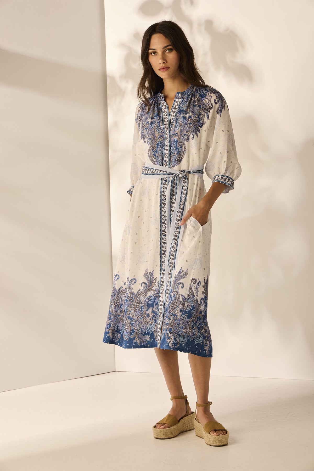 Step into artistic allure with the Payton Dress, a relaxed‑yet‑elegant silhouette crafted from a breezy Tencel‑ramie blend in the signature Payton print. Raglan sleeves gathered at border‑print cuffs and self‑covered buttons add refined detail. A removable belt offers waist‑cinching versatility. Effortlessly stylish for any occasion, it balances comfort and charm.