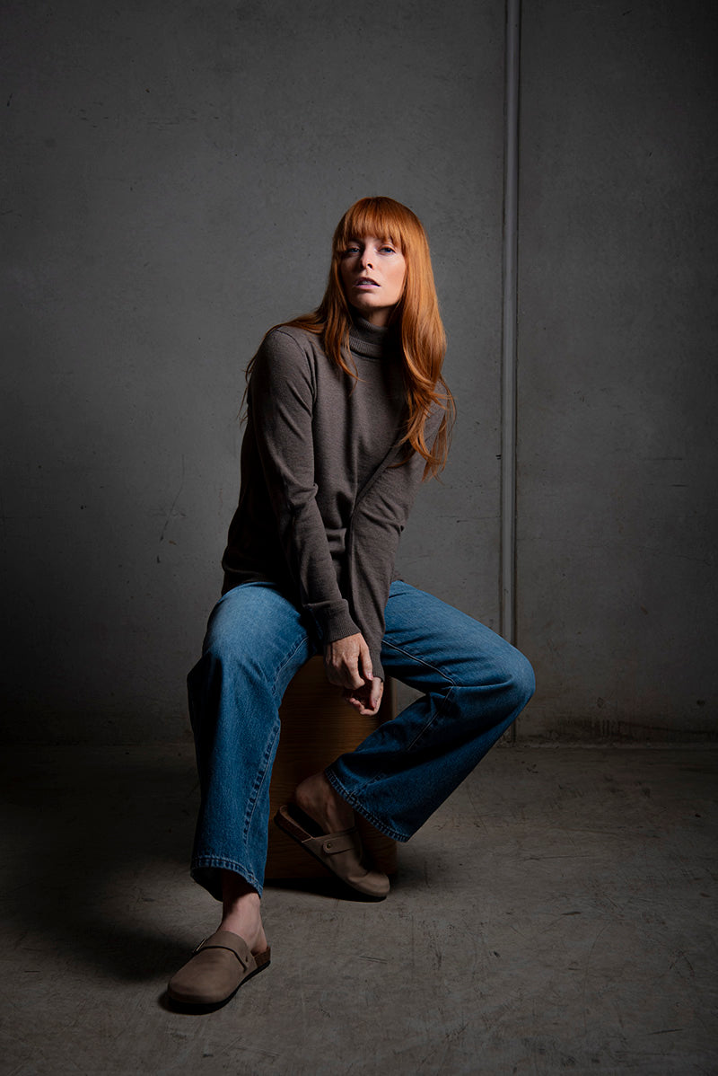 Crafted from a luxurious merino cashmere blend, this knit is perfect for autumnal layering, offering a fitted silhouette that is true to size. Whether you're dressing up or down, the Rosie Classic Roll-Neck Pullover is a versatile piece that ensures you stay cozy and chic.
