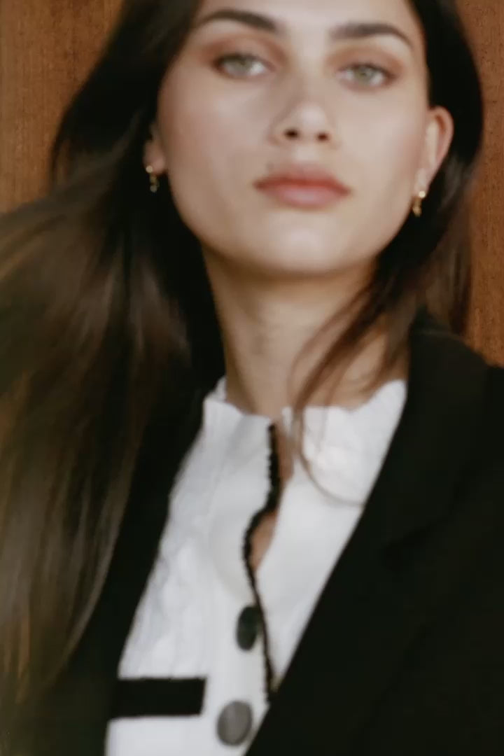 The Athena Jacket is a luxe acetate blend single-breasted longline blazer, featuring asymmetrical black tortoiseshell buttons. Fully lined. A dressy wardrobe staple, pair it with the matching Athena Pant for a chic, modern look.