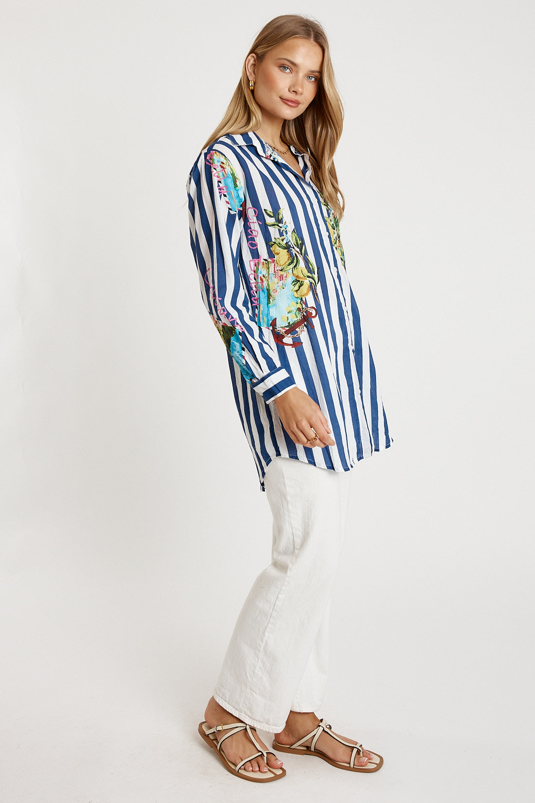 Elevate your wardrobe with the LulaLife Lucciano Shirt, a modern take on classic tailoring. Featuring a longer length and curved hem, this collared shirt offers effortless style from day to night. Crafted in 100% breathable cotton, it boasts a striking digital print and full-length sleeves with adjustable buttoned cuffs for a tailored fit. Designed in Australia, every detail combines comfort with contemporary flair, making it a versatile must-have for your collection.