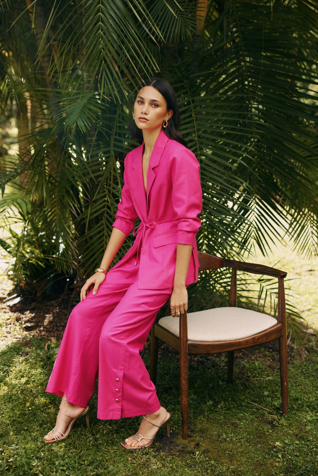 The Willa Pants by Loobie's Story offer a modern take on suiting with a relaxed wide-leg silhouette and refined tailoring. Designed with forward front seams and a half-elasticated back waist for comfort and shape, they feature back pockets and a front hem split with exposed buttons—allowing you to adjust the opening for personalized styling.