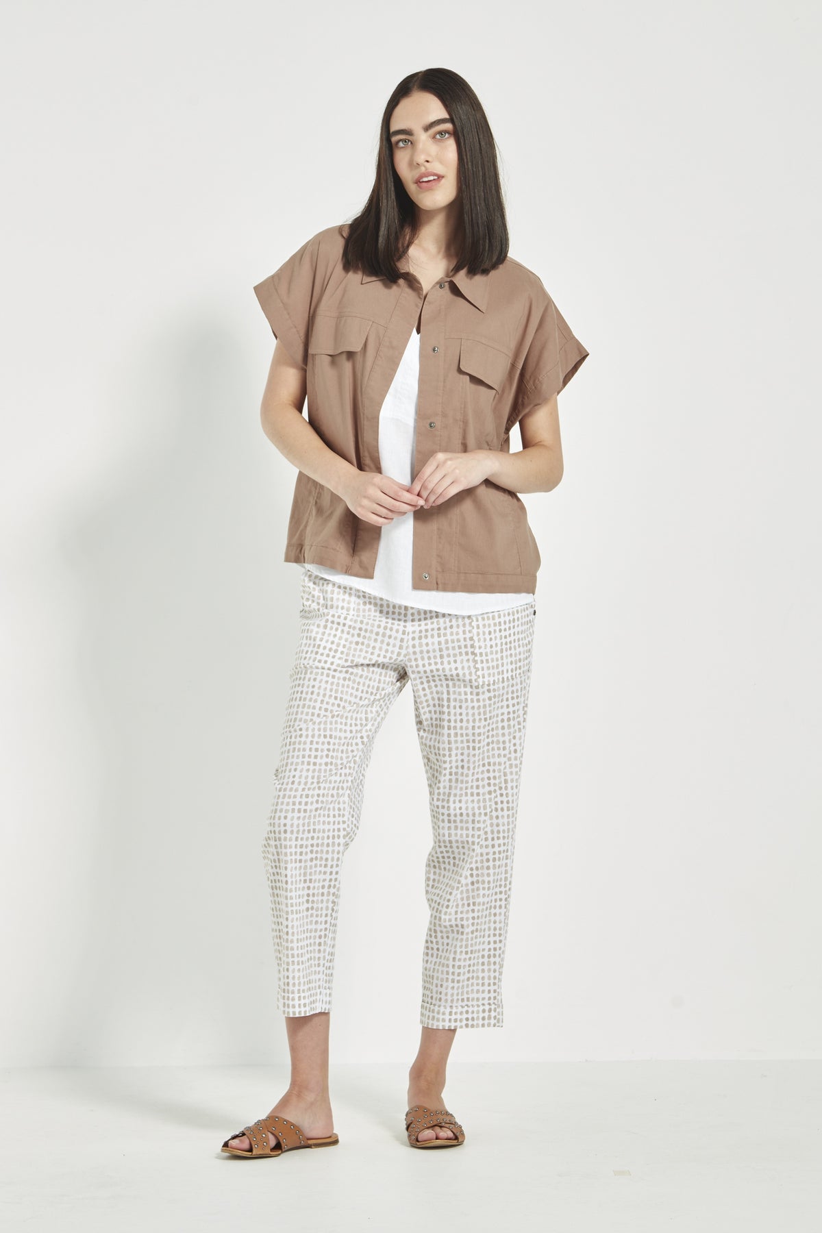 Verge Acrobat Tile Pant – Lightweight Stretch Cotton, Bark Print