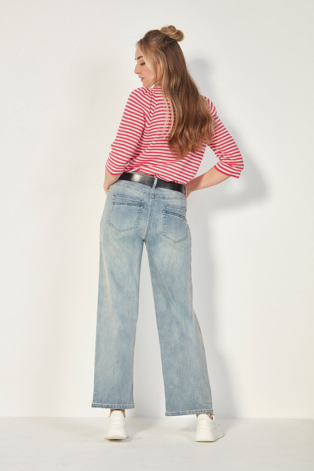 Flawlessly crafted wide-leg jeans. This 5-pocket, fly-front, full-length jean is made from soft and stretchable light-wash denim, perfect for a relaxed yet sophisticated look.
