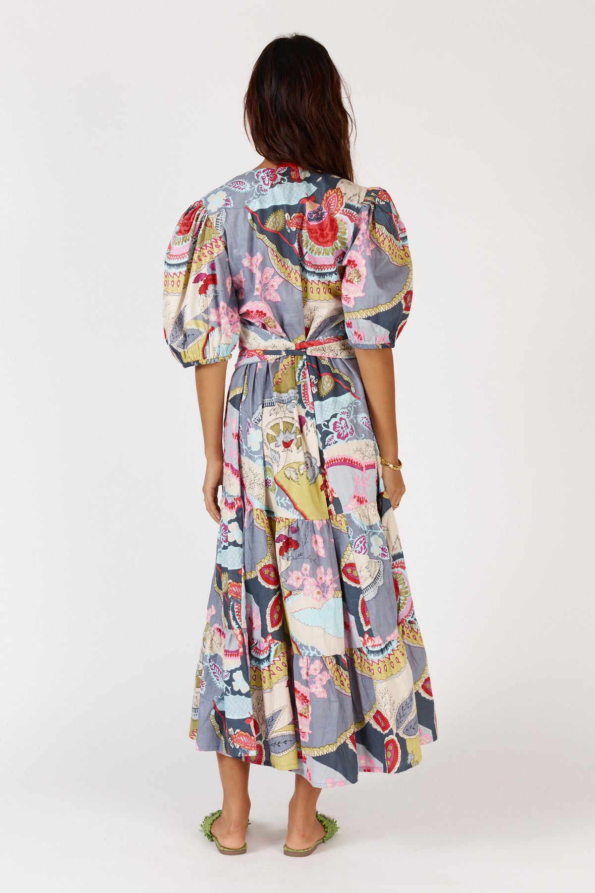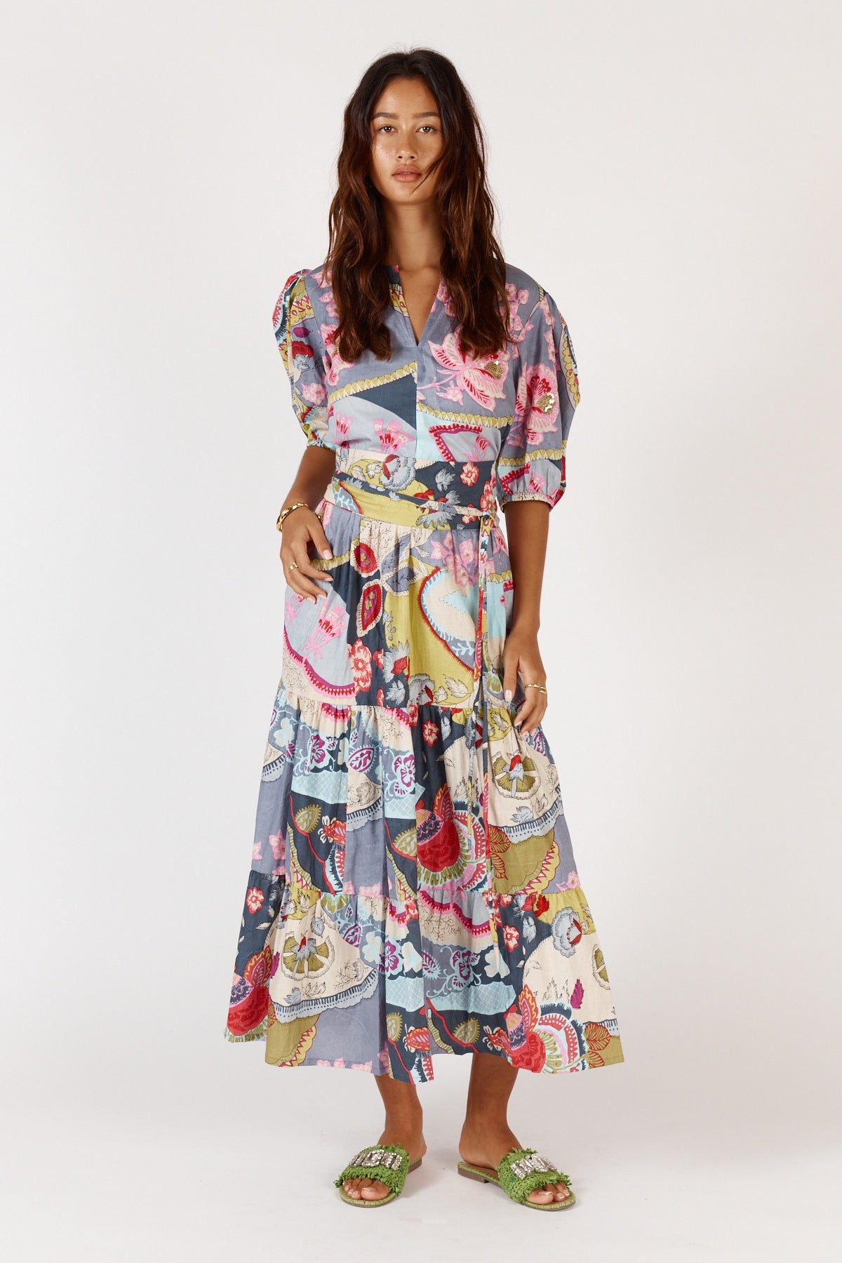 The Rubyyaya Udita Maxi dress offers a sophisticated silhouette with its fit and flair design and maxi length. Crafted from 100% cotton, it features a round neckline with a subtle split and hook-and-eye clasp, puffed sleeves with elasticated hems, and convenient side seam pockets. A self-fabric cummerbund belt accentuates the waist, while the floral print adds timeless elegance. Designed for a semi-fitted look, this dress fits true to size, making it an effortless choice for refined style.