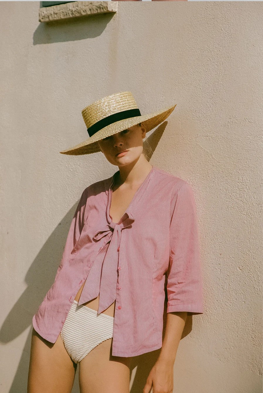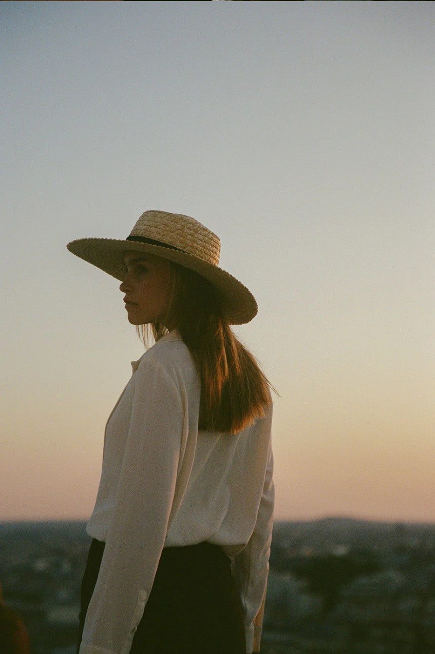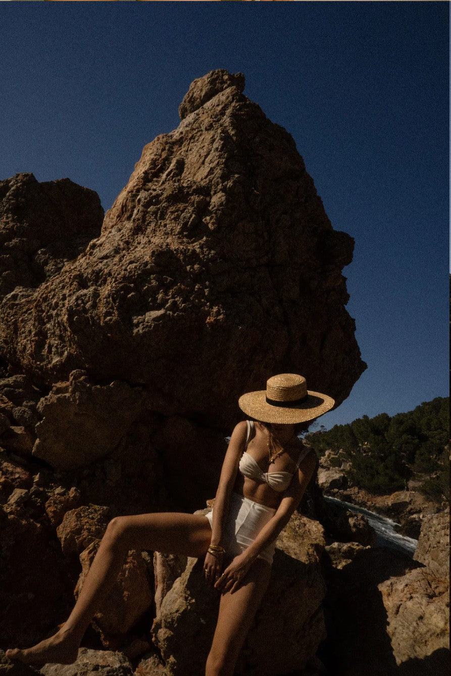 Skilfully hand-braided from glimmering golden wheat straw, the Mira Boater draws its inspiration from the Latin word ‘Mira,’ reflecting the peaks of ocean waves in its intricate pattern. Effortlessly cool, and uniquely sophisticated.