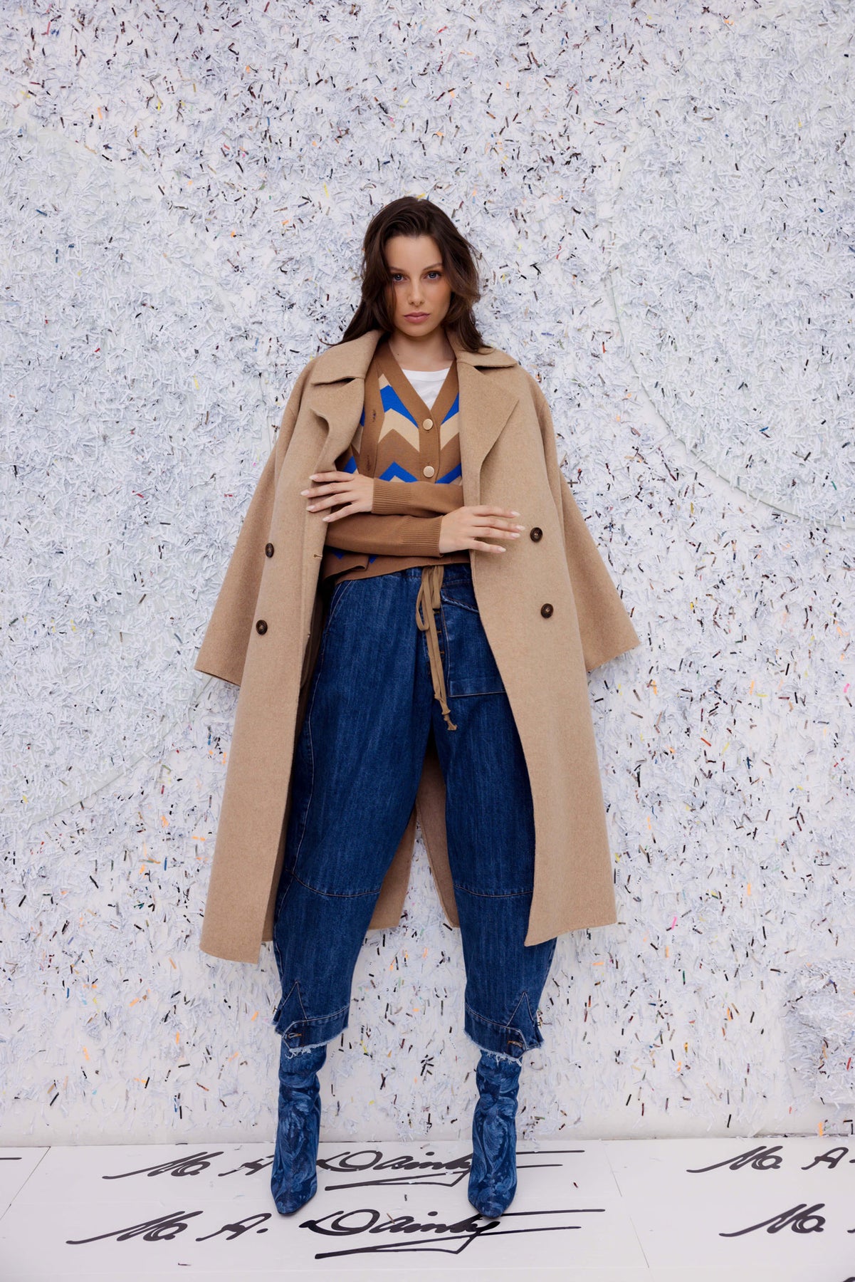 Another quirky and versatile creation from the wonderful M.A.Dainty. The M.A.Dainty's updated version of the Trucker jean can be worn full-length or transformed into shorts with a zip at the knees. Featuring a relaxed fit, these jeans come with side pockets, a cargo-style pocket, and a drawstring at the waist for added convenience. Made from 100% cotton, they offer both comfort and style.