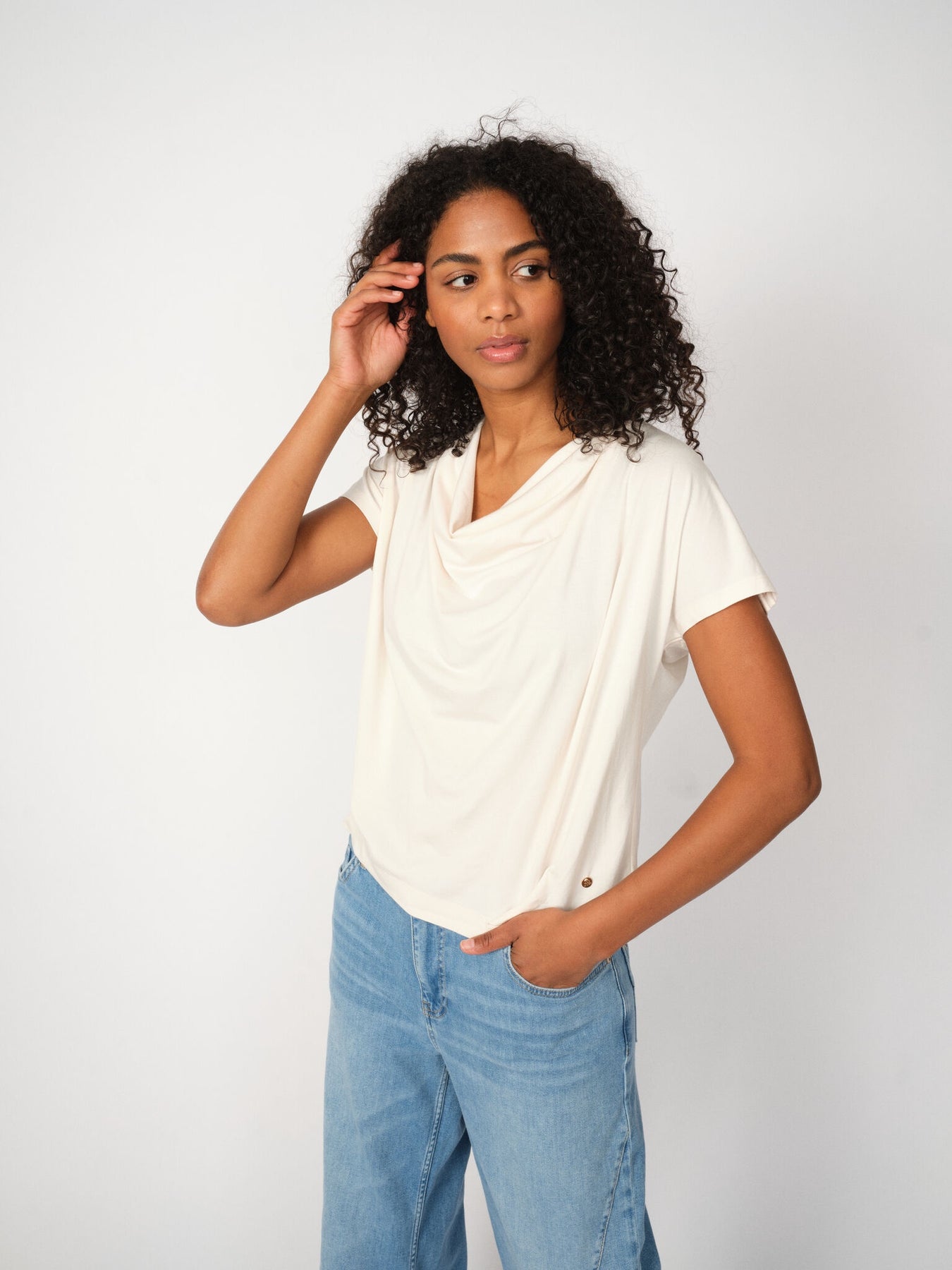Mos Mosh Sheng Tee – Relaxed Fit Cowl Neck T-Shirt in Modal Blend