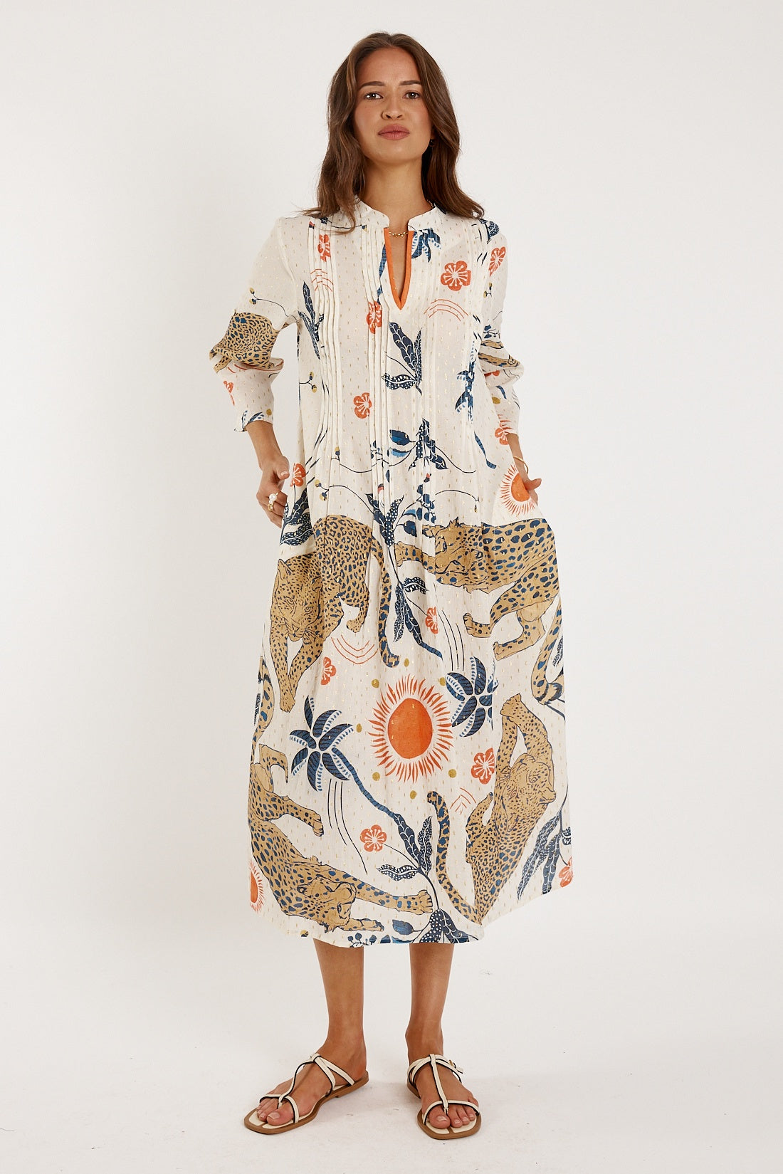 Step into effortless elegance with the Rubyyaya Celine Kaftan, a stunning fusion of comfort and artistry. Crafted from 100% breathable cotton, this kaftan showcases a vibrant digital print that turns heads while keeping you cool and confident. The pleated bodice adds subtle texture and movement, while side splits ensure relaxed sophistication with every step.
