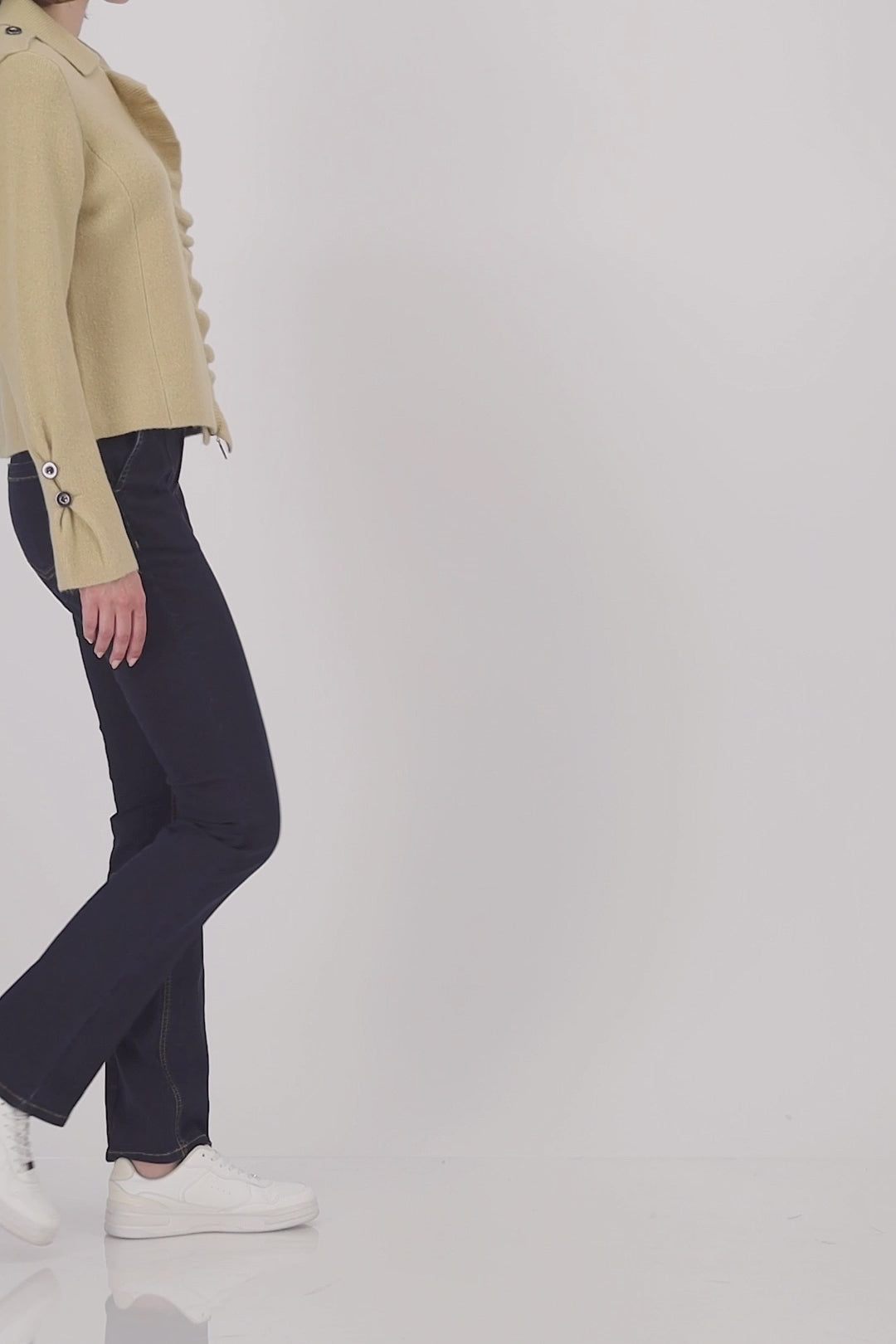 Elevate your everyday wardrobe with the Monari Ruffles Cardigan Jacket, an elegant layer crafted from a high‑quality cotton‑blend knit with added stretch for a soft, comfortable feel. Designed with refined ruffle detailing, a round neck with collar, long sleeves, and button accents at the cuffs, this regular‑fit jacket blends feminine charm with modern structure. Epaulettes and a sleek front zip add a contemporary edge, making it a versatile piece for polished casual dressing. The model is 1.80 m tall and wears size 36; length of size 38 is 54 cm.