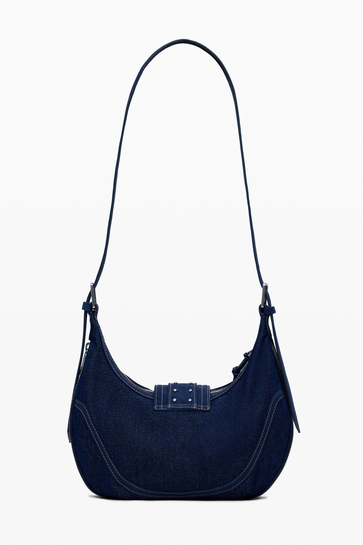 Add a touch of retro charm to your everyday look with the Desigual Medium Denim Bag with Buckles. Crafted in dark denim fabric and designed with an elegant oval silhouette, this medium‑sized shoulder bag features large decorative buckles and contrasting vintage‑style topstitching for a bold, fashion‑forward finish. Its structured shape and timeless denim texture make it a versatile accessory for both casual and elevated outfits.
