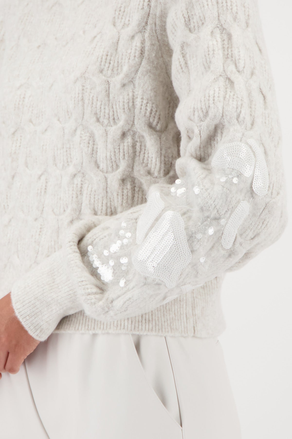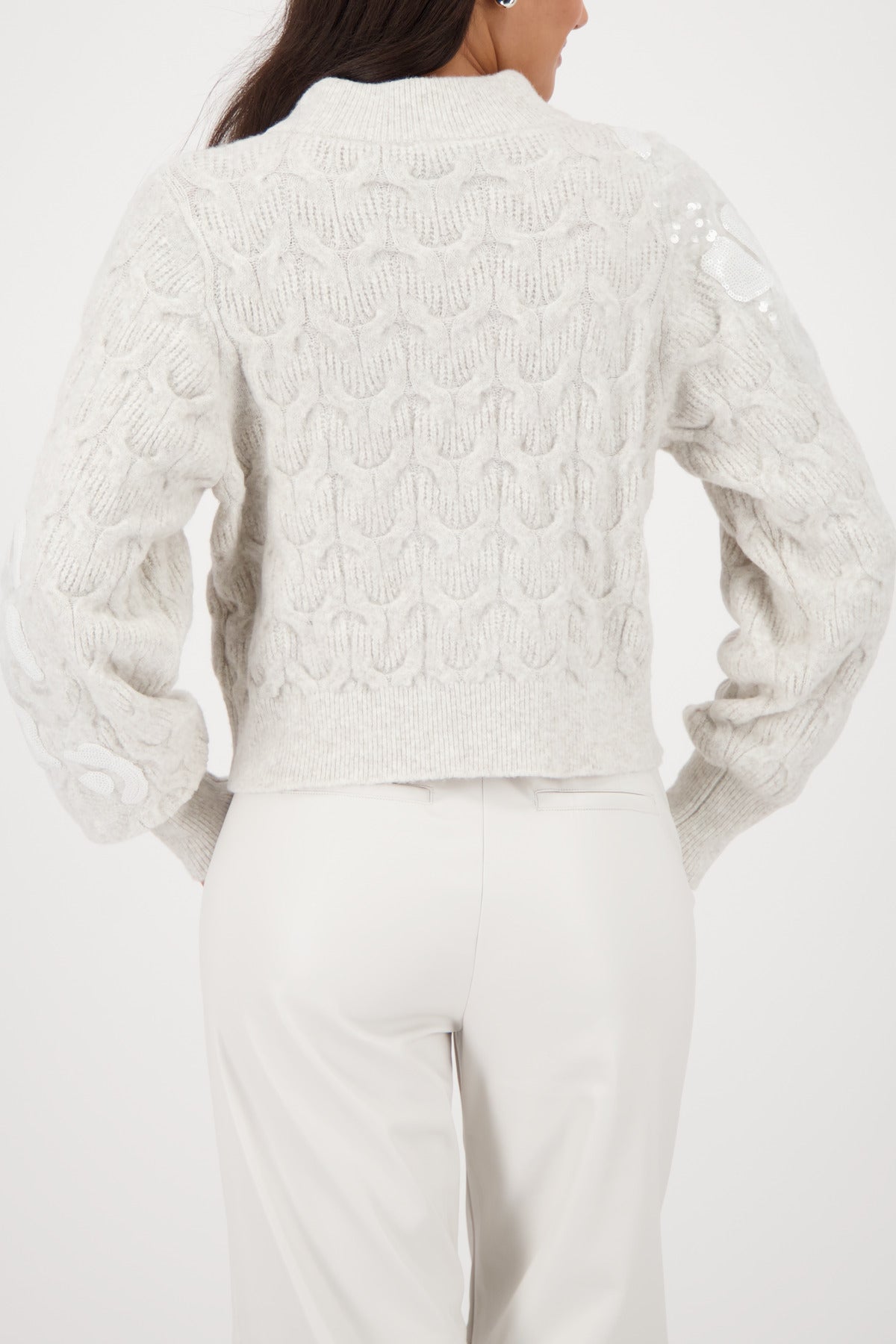 Monari Fleece Sweater + Sequins - Pearl