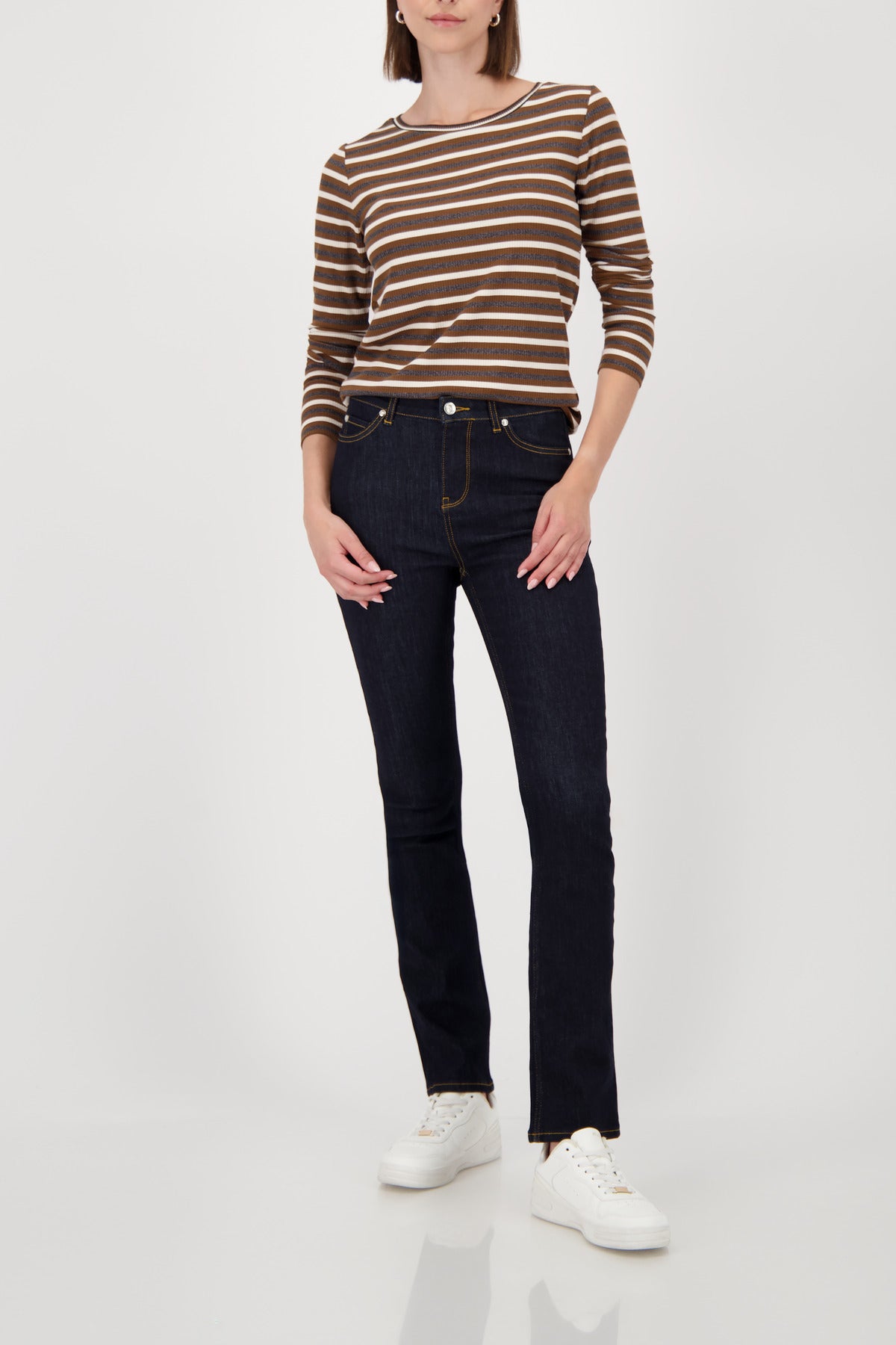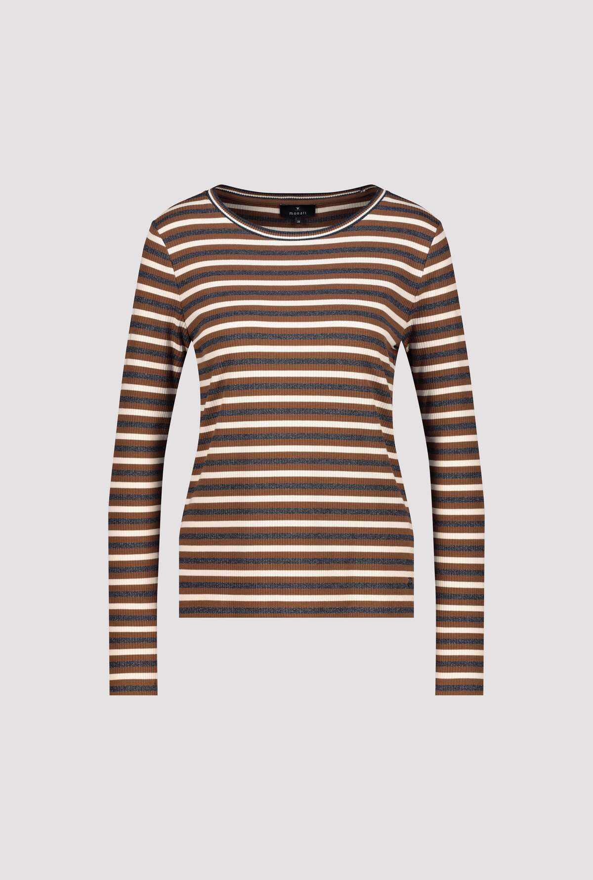 Elevate your everyday wardrobe with the Monari Lurex Stripe Tee, a long‑sleeve top that blends comfort with subtle glamour. Designed with a classic round neckline and refined decorative elements, it brings a touch of shimmer to casual looks while remaining beautifully wearable.