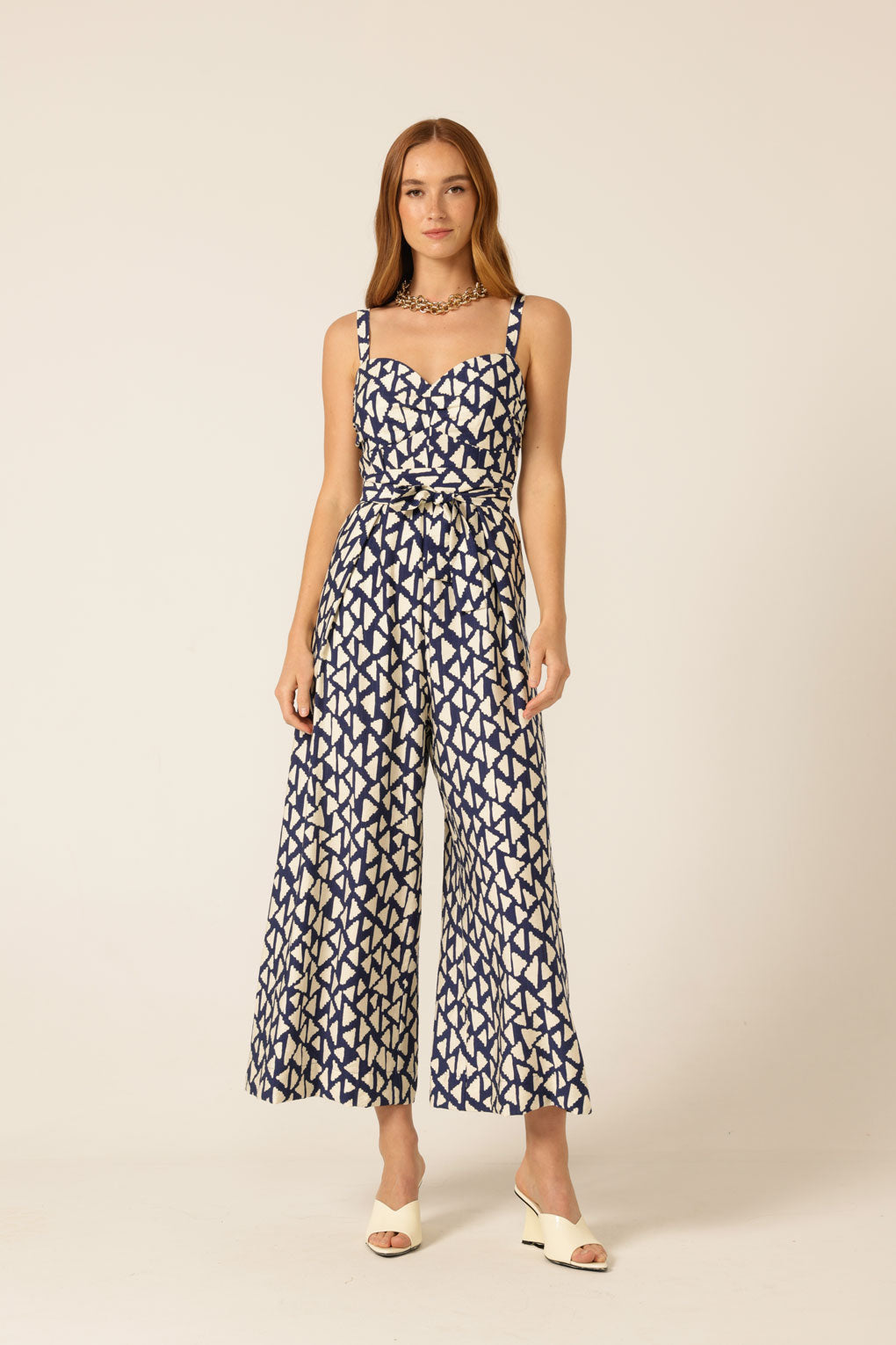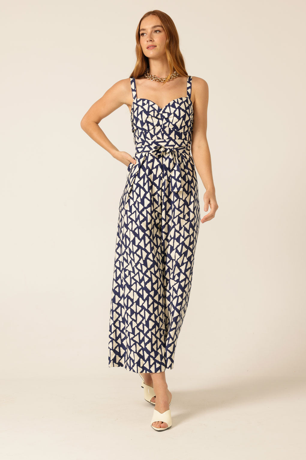 The Seaside Muse Jumpsuit is made from a lightweight viscose blend, featuring a sweetheart neckline, pleat detailing through the bust, and shirring at the back for a flexible fit. With functional pockets, a self-tie belt, and elasticated straps, this style can be worn loose or belted, perfect for weekends, holidays, and events.