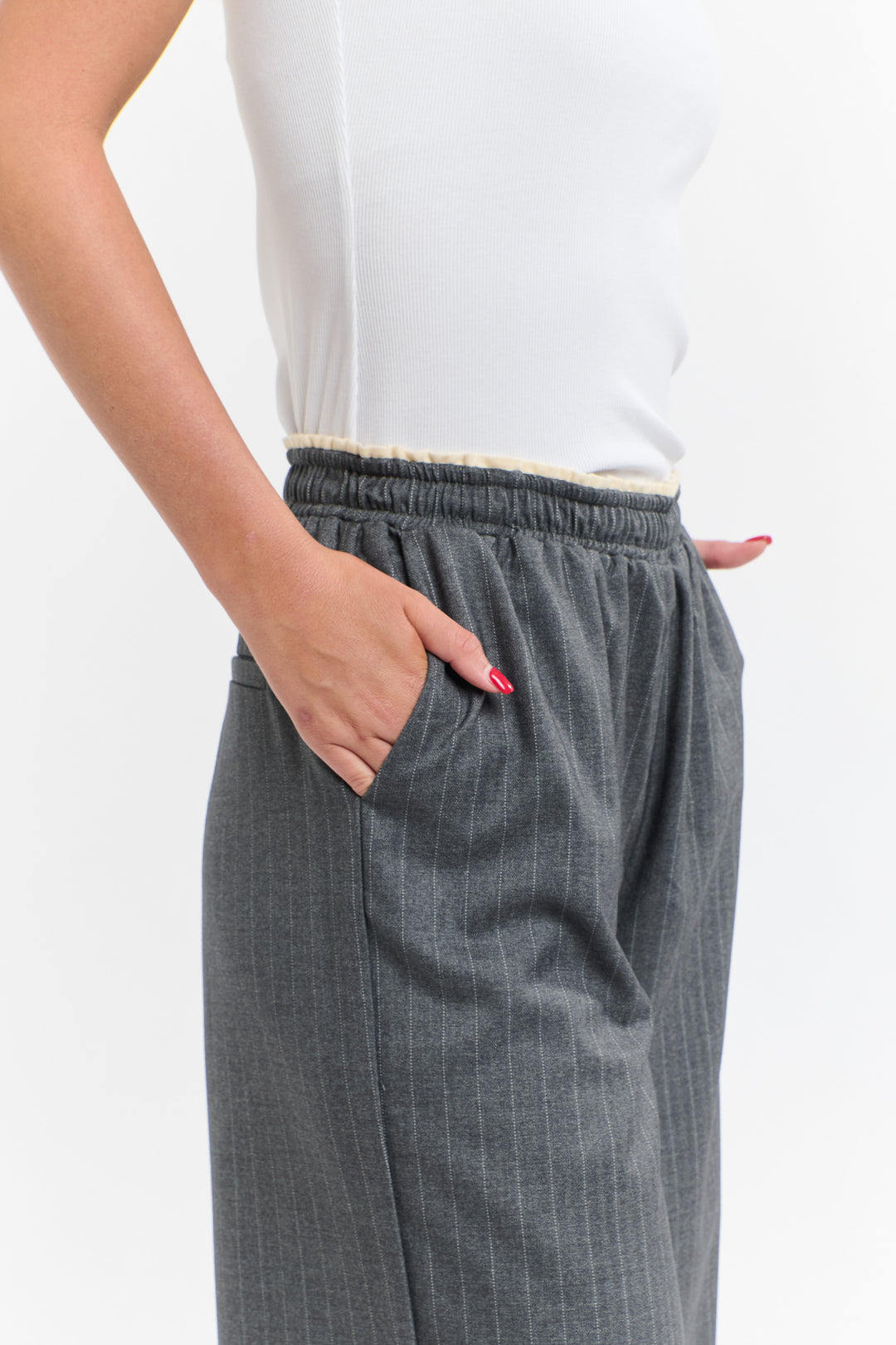 Introducing the Pinstripe Pants by 365 Days, designed for both comfort and style. These soft pinstripe pants feature a wide leg and an elastic waist for a relaxed fit. Crafted from soft stretch viscose fabric, they offer a luxurious feel and ease of movement. The fine pinstripes add a touch of sophistication, while the side pockets provide practicality. Perfect for any occasion, these pants are a versatile addition to your wardrobe.