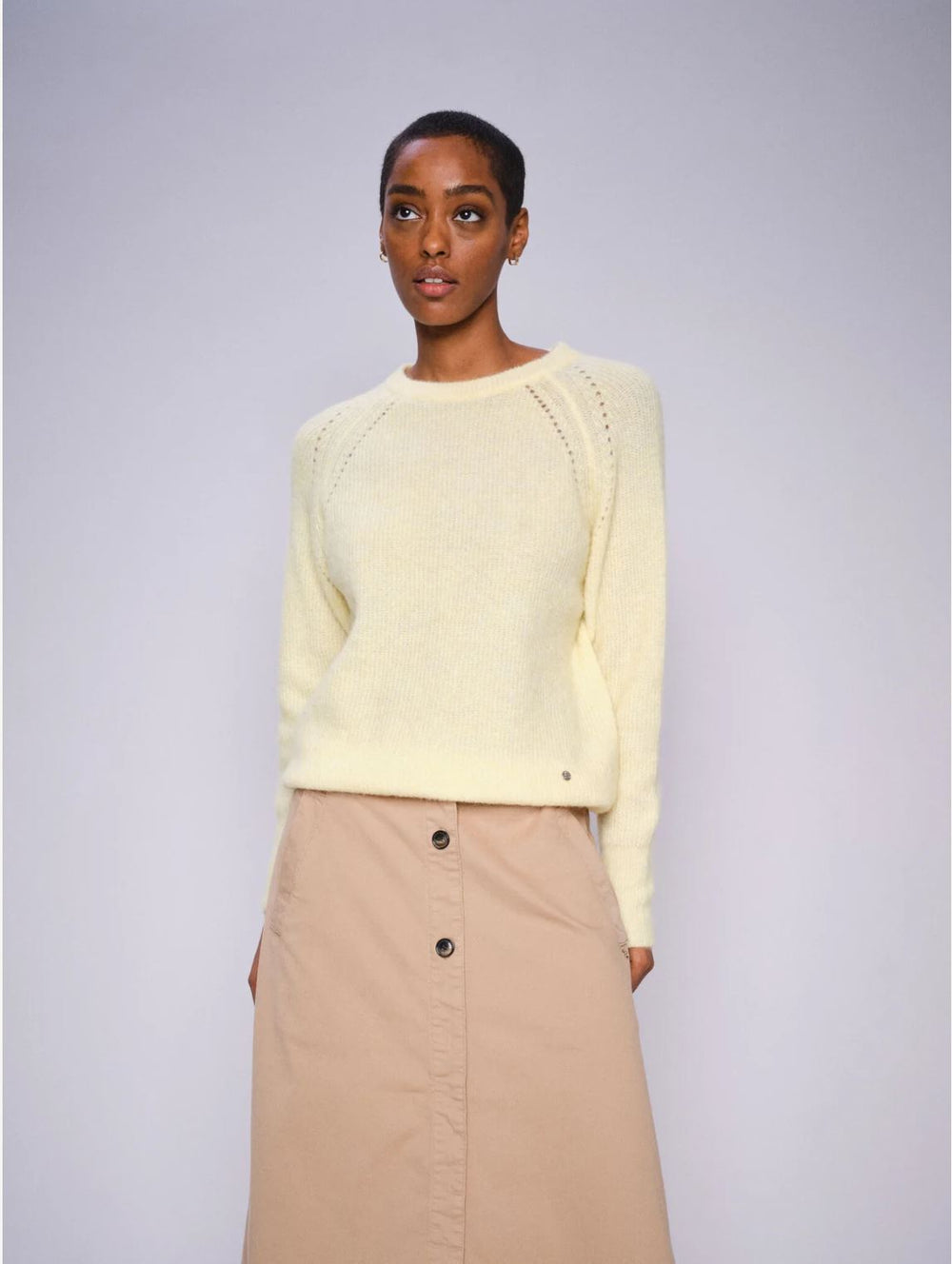 Stay warm with the Mos Mosh Tammy Thora made from soft alpaca and recycled wool knit. It has a regular shape and O-neck, it's ideal for chilly days. Pair it with jeans for effortless style all winter long.